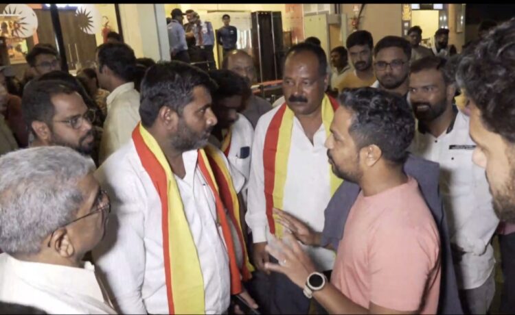 ಬೆಳಗಾವಿ: ನಾಳೆ ಎಂ ಇ ಎಸ್ ಪುಂಡಾಟಿಕೆ ಖಂಡಿಸಿ ಕರ್ನಾಟಕ ಬಂದ್ ಮಾಡಲಾಗುತ್ತಿದೆ. ಇದರ ಬೆನ್ನಲ್ಲೆ ಇಂದು ಬೆಳಗಾವಿಯಲ್ಲಿ ಮರಾಠಿ ಚಿತ್ರ ಬಿಡುಗಡೆ ಮಾಡಲಾಗಿತ್ತು. ಫಾಲೋವರ್ ಎಂಬ ಮರಾಠಿ ಚಿತ್ರದಲ್ಲಿ ಗಡಿ ವಿವಾದದ ಕುರಿತು ತೋರಿಸಲಾಗಿದೆ ಎಂದು ಆರೋಪಿಸಿ ಮೊದಲ ಶೋವನ್ನು ಕರವೇ ಶಿವರಾಮೇಗೌಡ ಬಣದ ಕಾರ್ಯಕರ್ತರು ಬಂದ್ ಮಾಡಿಸಿದರು. ಬೆಳಗಾವಿಯ ಐನಾಕ್ಸ್ ಚಿತ್ರಮಂದಿರದಲ್ಲಿ ಬಿಡುಗಡೆಯಾಗಿದ್ದ ಚಿತ್ರದ ಶೋವನ್ನು ಥಿಯೇಟರ್ ಮಾಲೀಕರು ಬಂದ್ ಮಾಡಿದರು. ಕರವೇ ಕಾರ್ಯಕರ್ತರು ಚಿತ್ರಮಂದಿರಕ್ಕೆ ಬರುತ್ತಿದ್ದಂತೆ ಸಿನಿಮಾದ ಬ್ಯಾನರ್ ತೆಗೆದಿಟ್ಟ ಸಿಬ್ಬಂದಿ 8 ರಿಂದ 10 ಕ್ಕೆ ಬುಕ್ ಆಗಿದ್ದ ಶೋ ಕ್ಯಾನ್ಸಲ್ ಮಾಡಿದರು. ಇಂದು ಮಹಾರಾಷ್ಟ್ರ ಮತ್ತು ಬೆಳಗಾವಿಯಲ್ಲಿ ಫಾಲೋವರ್ ಚಿತ್ರ ಬಿಡುಗಡೆಯಾಗಿತ್ತು. ಮೂವಿ ಟ್ರೈಲರ್ ನಲ್ಲಿ ಬೆಳಗಾವಿ ಯಳ್ಳೂರು ಮಹಾರಾಷ್ಟ್ರ ಬೋರ್ಡ್ ವಿವಾದ ಪ್ರಸ್ತಾಪಿಸಲಾಗಿದೆ ಎಂದು ಆರೋಪವಿತ್ತು ಎನ್ನಲಾಗಿದ್ದು ಈ ಆರೋಪವನ್ನು ಚಿತ್ರತಂಡ ತಳ್ಳಿಹಾಕಿದೆ. ಚಿತ್ರದಲ್ಲಿ ಯಾವುದೇ ಗಡಿ ವಿವಾದದ ಕುರಿತು ತೋರಿಸಿಲ್ಲ. ಕನ್ನಡದಲ್ಲಿಯೇ ಚಿತ್ರ ಪ್ರದರ್ಶನ ಮಾಡುತ್ತಿದ್ದೆವೆ.ಏಕಾಎಕಿ ಚಿತ್ರಪ್ರದರ್ಶನವನ್ನು ಬಂದ್ ಮಾಡಿಸಿದ್ದಾರೆ ಎಂದು ಚಿತ್ರತಂಡ ಅಳಲು ತೋಡಿಕೊಂಡ ಘಟನೆಯೂ ನಡೆಯಿತು. ಇನ್ನು ಚಿತ್ರ ಪ್ರದರ್ಶನ ಕ್ಯಾನ್ಸಲ್ ಆದ ಹಿನ್ನೆಲೆ ಸಿನಿಮಾ ನೋಡಲು ಬಂದ ಪ್ರೇಕ್ಷಕರಿಗೆ ಚಿತ್ರಮಂದಿರದವರು ಹಣ ವಾಪಸ್ ನೀಡಿ ಕಳಿಸಿದರು. ಸ್ಥಳಕ್ಕೆ ಕ್ಯಾಂಪ್ ಎಸಿಪಿ, ಸಿಪಿಐ, ಭೇಟಿ ನೀಡಿ ಪರಿಸ್ಥಿತಿ ತಿಳಿಗೊಳಿಸಿದರು.
