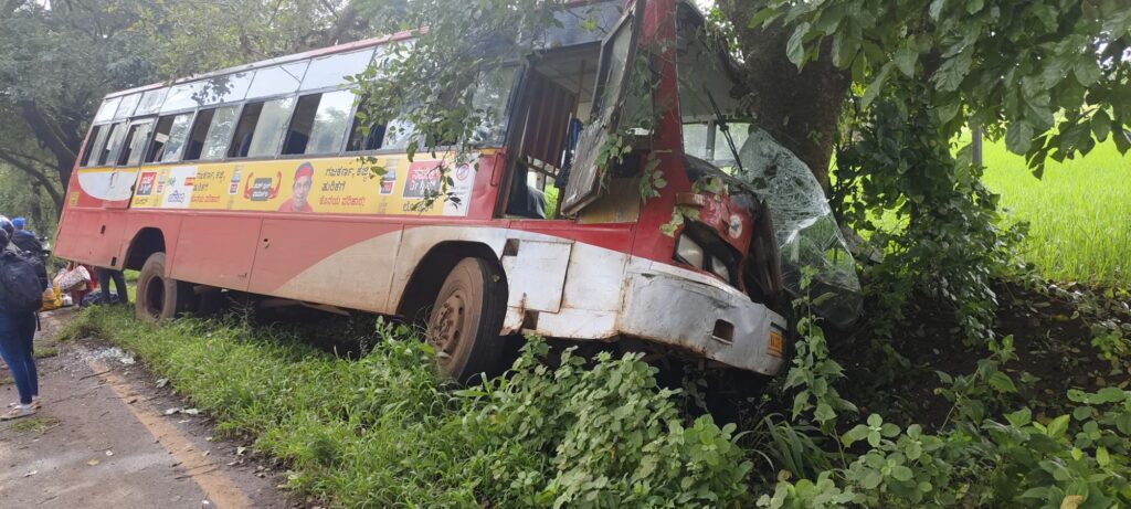 ಬೆಳಗಾವಿ ತಾಲೂಕಿನ ಬೆಳಗುಂದಿ ಗ್ರಾಮದ ಬಳಿ ಸರ್ಕಾರಿ ಬಸ್ ನ ಸ್ಟೇಯರಿಂಗ್ ರಾಡ್ ಕಟ್ಟಾಗಿ ಬಸ್ ಕಂದಕಕ್ಕಿಳಿದ ಘಟನೆ ನಡೆದಿದೆ. ಬೆಳಗಾವಿಯಿಂದ ಬೆಳಗುಂದಿಗೆ ಬಸ್ ಹೋಗುತ್ತಿದ್ದಾಗ ಘಟನೆ ನಡೆದಿದ್ದು ಅದೃಷ್ಟವಶಾತ್ ಘಟನೆಯಲ್ಲಿ ಯಾವುದೇ ಪ್ರಾಣಾಪಾಯ ಸಂಭವಿಸಿಲ್ಲ. ಬಸ್ಸಿನಲ್ಲಿ ಒಟ್ಟು 35 ಕ್ಕೂ ಹೆಚ್ಚು ಜನ ಪ್ರಯಾಣಿಸುತ್ತಿದ್ದ ಮಾಹಿತಿ ದೊರೆತಿದ್ದು ಅದರಲ್ಲಿ 15 ಪ್ರಯಾಣಿಕರಿಗೆ ಸಣ್ಣ ಪುಟ್ಟ ಗಾಯಗಳಾಗಿವೆ. ಅಪಘಾತ ಸಂಭವಿಸುತ್ತಿದ್ದಂತೆ ಸ್ಥಳೀಯರು ಬಸ್ ನಲ್ಲಿ ಸಿಲುಕಿದ್ದ ಜನರನ್ನು ರಕ್ಷಿಸಿ ಗಾಯಾಳುಗಳನ್ನು ಜಿಲ್ಲಾಸ್ಪತ್ರೆಗೆ ರವಾನಿಸಿದ್ದಾರೆ.ಸಧ್ಯ ಜಿಲ್ಲಾಸ್ಪತ್ರೆಯಲ್ಲಿ ಗಾಯಾಳುಗಳಿಗೆ ಚಿಕಿತ್ಸೆ ಮುಂದುವರೆದಿದ್ದು ಬೆಳಗಾವಿಯ ಎಪಿಎಂಸಿ ಪೊಲೀಸ್ ಠಾಣಾ ವ್ಯಾಪ್ತಿಯಲ್ಲಿ ಘಟನೆ ನಡೆದಿದೆ.