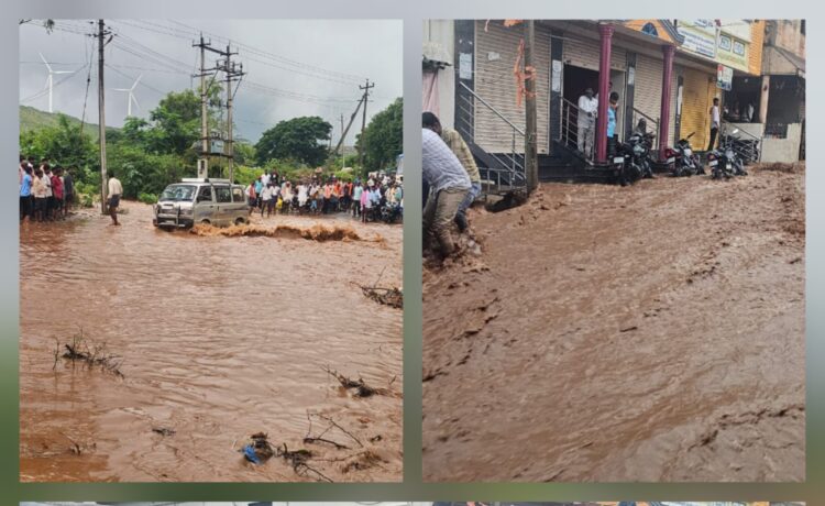 ಬೆಳಗಾವಿ: ಬೆಳಗಾವಿ ಜಿಲ್ಲೆಯ ಸವದತ್ತಿ ತಾಲೂಕಿನ ಉಗರಗೋಳ ಗ್ರಾಮದಲ್ಲಿ ಶುಕ್ರವಾರ ಸಂಜೆ ಸುರಿದ ಧಾರಾಕಾರ ಮಳೆಯಿಂದಾಗಿ ಉಗರಗೋಳ–ಯಲ್ಲಮ್ಮನಗುಡ್ಡ ಮಾರ್ಗದಲ್ಲಿನ ಹಳ್ಳ ಉಕ್ಕಿ ಹರಿಯುತ್ತಿದೆ. ಇದರಿಂದಾಗಿ ಸಂಚಾರ ಸ್ಥಗಿತಗೊಂಡಿದ್ದು, ಸಾವಿರಾರು ಭಕ್ತರು ಪರದಾಡಿದರು.