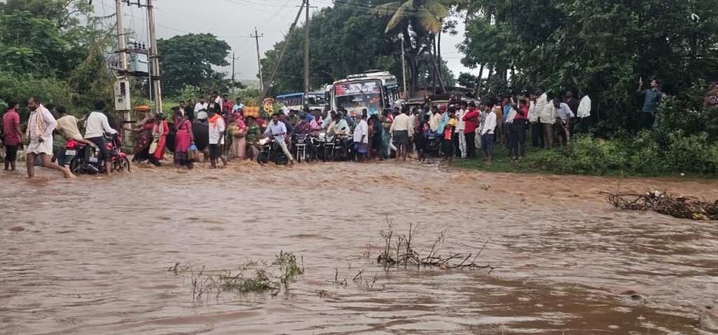 ಆದರೆ, ಶುಕ್ರವಾರ ಮಧ್ಯಾಹ್ನ 3ರಿಂದ ಎರಡು ತಾಸಿಗೂ ಅಧಿಕ ಹೊತ್ತು ಧಾರಾಕಾರ ಮಳೆಯಾಗಿ ಸಂಪರ್ಕ ಕಡಿತಗೊಂಡಿದ್ದು, ಹಳ್ಳದ ಎರಡೂ ಬದಿ ನೂರಾರು ವಾಹನಗಳು ಸಾಲುಗಟ್ಟಿ ನಿಂತಿವೆ. ಕೆಲವು ಭಕ್ತರು ಸುತ್ತು ಬಳಸಿ ಪರ್ಯಾಯ ಮಾರ್ಗಗಳಲ್ಲಿ ಸಂಚರಿಸುತ್ತಿದ್ದಾರೆ.