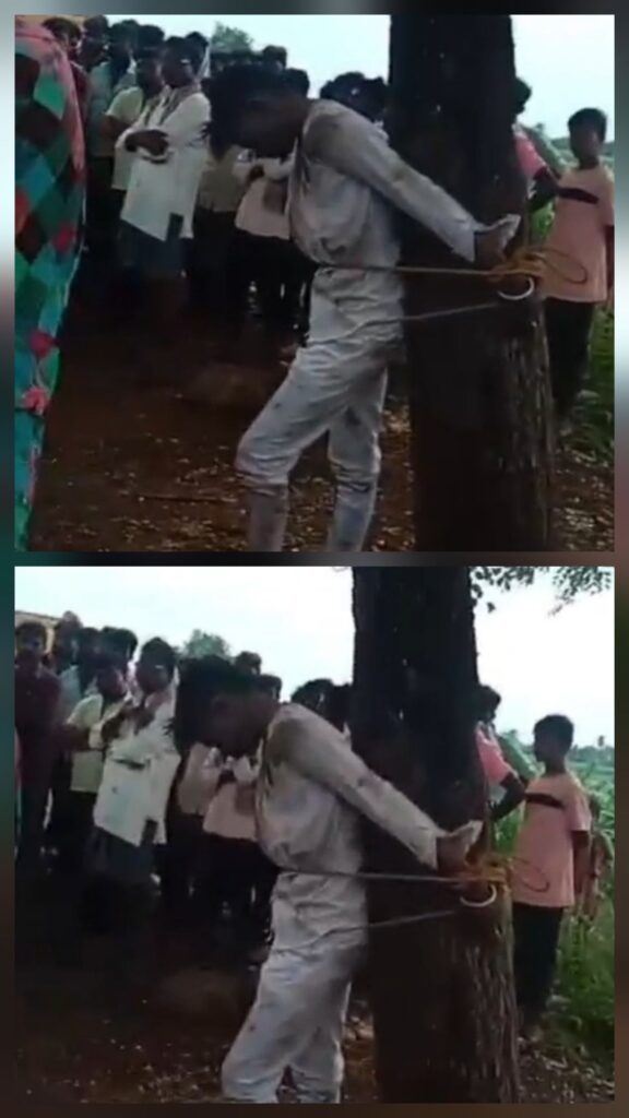 ಬೆಳಗಾವಿ ಜಿಲ್ಲೆಯ ರಾಮದುರ್ಗ ತಾಲೂಕಿನ ಗೊಡಚಿ ಗ್ರಾಮದಲ್ಲಿ ಹೀನ ಕೃತ್ಯವೊಂದು ನಡೆದಿದೆ. ಜಮೀನು ವಿವಾದ ಹಾಗೂ ಯುವತಿಯನ್ನು ಚುಡಾಯಿಸಿದ ಎಂಬ ಕಾರಣಕ್ಕೆ ಯುವಕನನ್ನು ಗಿಡಕ್ಕೆ ಕಟ್ಟಿ ಥಳಿಸಲಾಗಿದೆ.