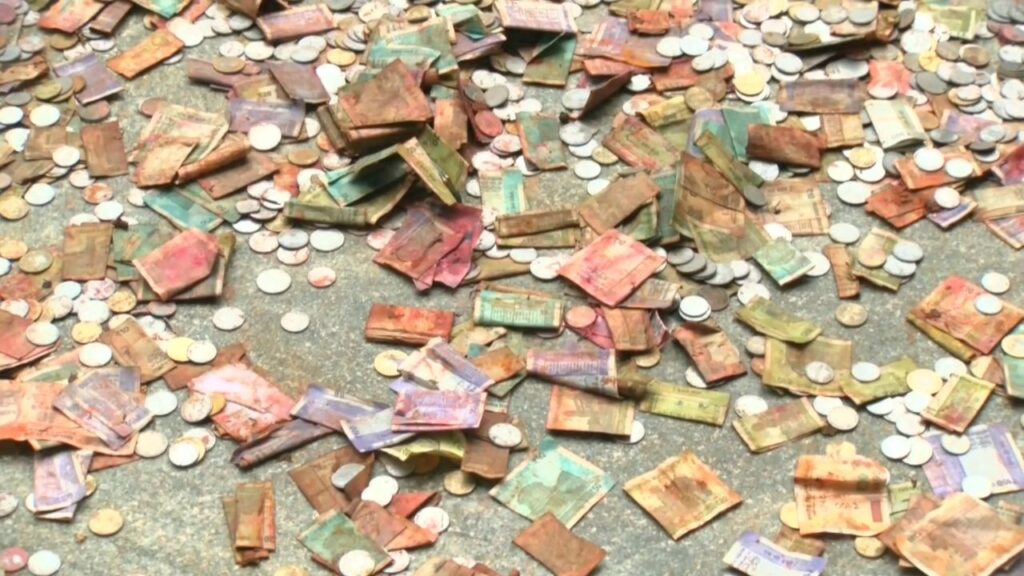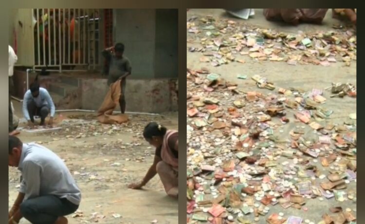 ನೀರಲ್ಲಿ ತೋಯ್ದ ಬಟ್ಟೆಗಳನ್ನ ಒಣ ಹಾಕೋದು ಕಾಮನ್ ಆದರೆ ಬೆಳಗಾವಿ ಜಿಲ್ಲೆಯ ಸವದತ್ತಿಯ ಸುಕ್ಷೇತ್ರ ಯಲ್ಲಮ್ಮನ ಸನ್ನಿಧಾನದಲ್ಲಿ ನೋಟುಗಳನ್ನು ಒಣ ಹಾಕಲಾಗುತ್ತಿದೆ.ಮೊನ್ನೆಯಷ್ಟೆ ಸುರಿದ ಭಾರಿ ಮಳೆಗೆ ಸವದತ್ತಿ ಯಲ್ಲಮ್ಮನ ಕ್ಷೇತ್ರ ಸಂಪೂರ್ಣ ಜಲಾವೃತವಾಗಿತ್ತು. ಆ ವೇಳಿ ನೀರಿನಲ್ಲಿ ಯಲ್ಲಮ್ಮನ ಸನ್ನಿಧಿಯಲ್ಲಿದ್ದ ಹುಂಡಿಯೂ ಸಹ ಮುಳುಗಡೆಯಾಗಿತ್ತು.ಸುಮಾರು ಮೂರು ಅಡಿ ನೀರಲ್ಲಿ ಹುಂಡಿ ಮುಳುಗಡೆಯಾಗಿತ್ತು. ಹೀಗಾಗಿ ನಿನ್ನೆ ನೀರು ಕಡಿಮೆಯಾದ ಬಳಿಕ ದೇವಸ್ಥಾನದ ಸಿಬ್ಬಂಧಿ ಹುಂಡಿಯನ್ನು ತೆಗೆದು ಹುಂಡಿಯಲ್ಲಿದ್ದ ನೋಟುಗಳನ್ನು ಬಿಸಿಲಿಗೆ ಒಣ ಹಾಕಿದ್ದಾರೆ. ದೇವಸ್ಥಾನದ ಆವರಣದಲ್ಲಿ ಎಲ್ಲಿ ನೋಡಿದರೂ ಅಲ್ಲಿ ನೋಟುಗಳನ್ನ ಸಧ್ಯ ಸಿಬ್ಬಂಧಿಗಳು ಒಣಗಿಸೋ ಕೆಲಸದಲ್ಲಿ ತೊಡಗಿದ್ದಾರೆ. ಕಾಣಿಕೆಯಲ್ಲಿದ್ದ ನೋಟುಗಳೆಲ್ಲ ಕುಂಕುಮ ಹಾಗೂ ಭಂಡಾರಮಯವಾಗಿವೆ.ಮತ್ತೊಂದೆಡೆ ನಿಂತ ನೀರನ್ನು ಹೊರ ಹಾಕಿ ದೇವಸ್ಥಾನವನ್ನು ಸ್ವಚ್ಛ ಮಾಡುವ ಕೆಲಸದಲ್ಲೂ ಸಹ ಸಿಬ್ಬಂಧಿ ತೊಡಗಿದ್ದಾರೆ. ದೇವಸ್ಥಾನಕ್ಕೆ ದರ್ಶನಕ್ಕೆ ಬರುವ ಭಕ್ತರಿಗೆ ಯಾವುದೇ ತೊಂದರೆಯಾಗದಂತೆ ದೇವಸ್ಥಾನದ ಆಡಳಿತ ಮಂಡಳಿ ನೋಡಿಕೊಳ್ತಿದೆ.