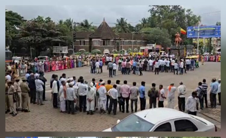 ಬೆಳಗಾವಿಗಲ್ಲಿ ಶ್ರೀ ಕ್ಷೇತ್ರ ಧರ್ಮಸ್ಥಳ ವಿರುದ್ಧ ಷಡ್ಯಂತ್ರ, ಹಾಗೂ ಅಪಪ್ರಚಾರ ಮಾಡಲಾಗುತ್ತಿದೆ ಎಂದು ಆರೋಪಿಸಿ ಪ್ರತಿಭಟನೆ ನಡೆಸಲಾಯ್ತು.ಕುಂದಾನಗರಿ ಬೆಳಗಾವಿಯಲ್ಲಿ ಧರ್ಮಸ್ಥಳ ಭಕ್ತರು ಪ್ರತಿಭಟನೆ ನಡೆಸಿದರು.
